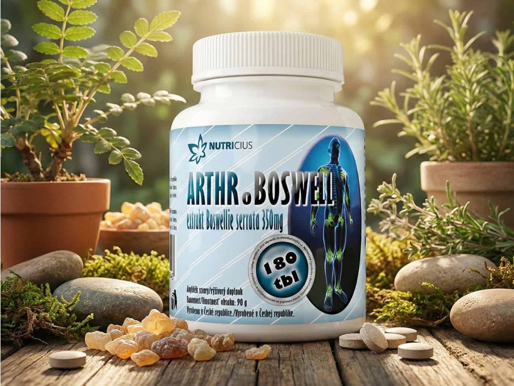 Nutricius Arthroboswell je doplněk výživy obsahující kvalitní extrakt z pryskyřice stromu Boswellia serrata, který je tradičně využíván pro jeho přírodní obsah boswellových kyselin. Tyto látky jsou oceňovány pro svou schopnost podporovat zdravý stav kloubů a jejich přirozenou pohyblivost.