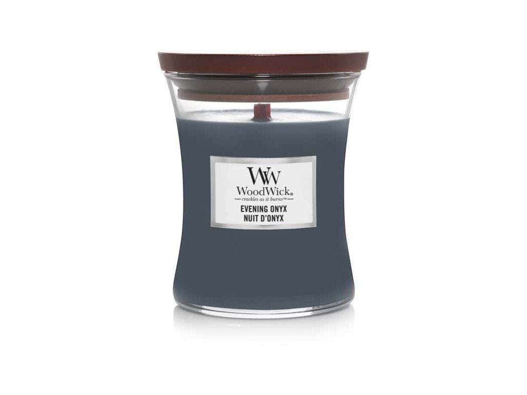 Svíčka WoodWick Evening Onyx přináší atmosféru temného večera plného hloubky a elegance, která dokáže proměnit váš prostor.