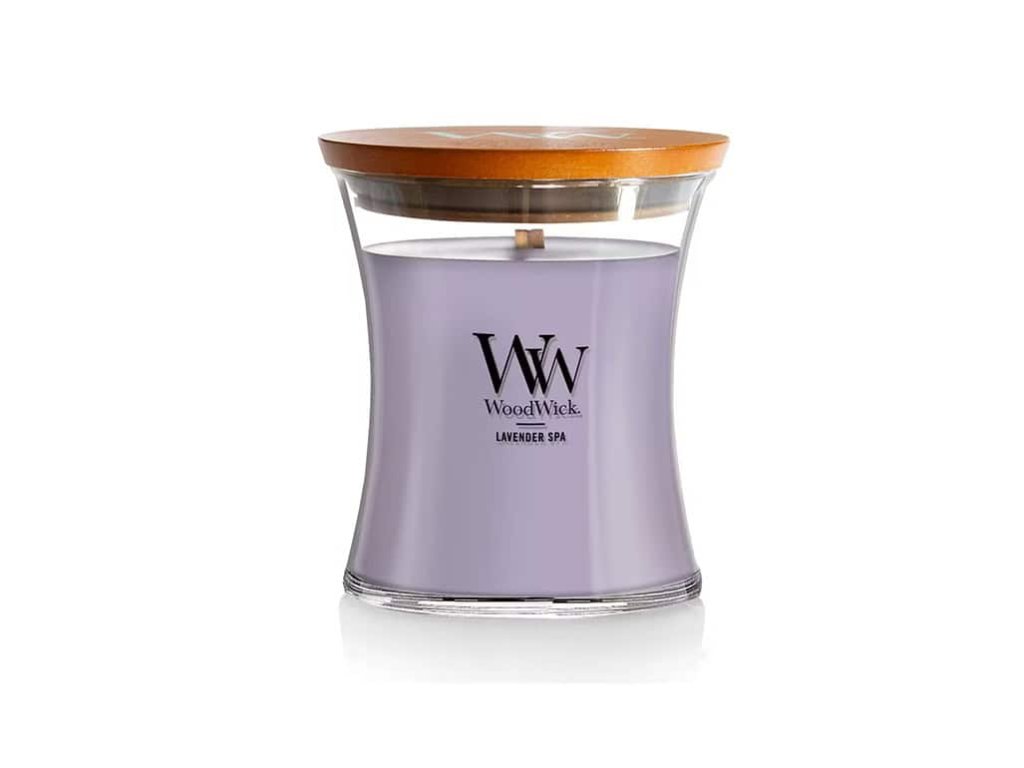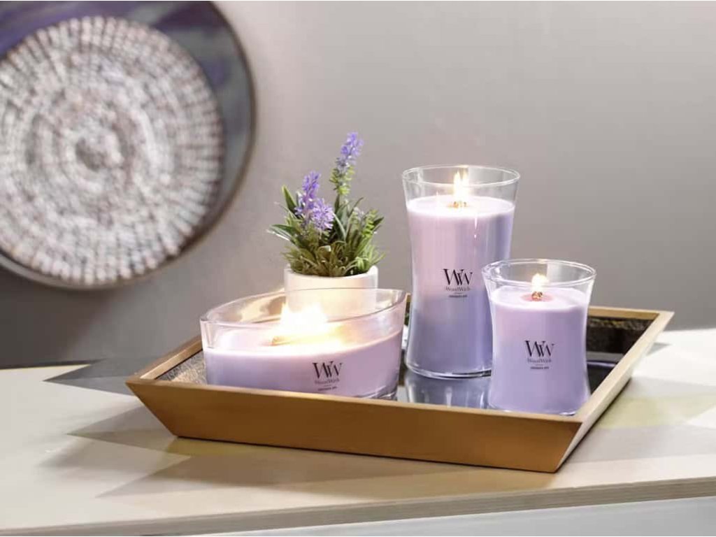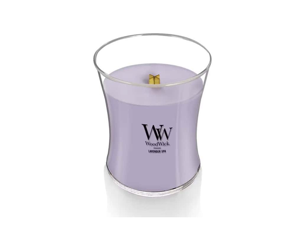 Svíčka WoodWick Lavender Spa vás zve k prostředí plného klidu a relaxace – jako byste strávili den v luxusním wellness. Vrchní tóny tvoří bylinné a zelené akcenty s levandulí, ve středních tónech se rozvíjí levandule, rozmarýn a eukalyptus, a základní tón uzavírá levandule a dřevo.