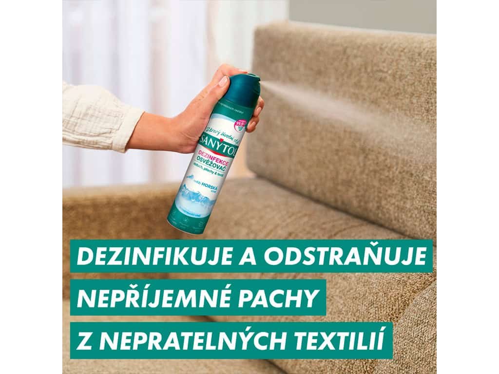 Dezinfekční osvěžovač vzduchu, povrchů a textilií Sanytol nabízí kompletní řešení pro hygienicky čistý a svěže vonící domov. Sprej nejen neutralizuje pachy, ale také odstraňuje jejich skutečné příčiny, aniž by je pouze překrýval.