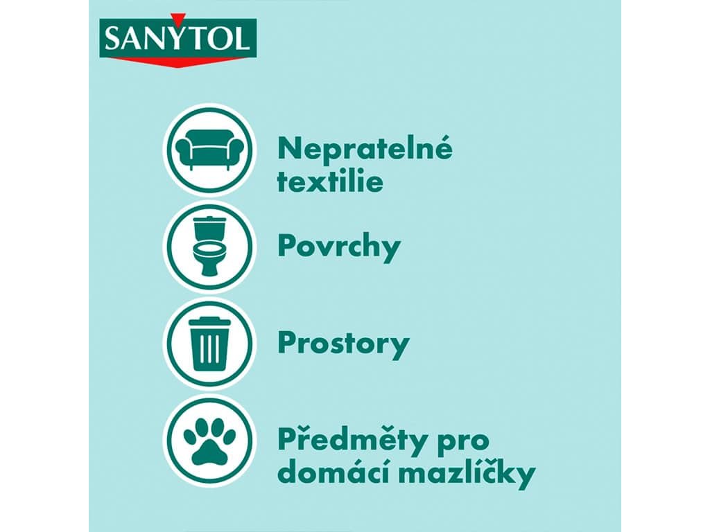 Sanytol nepřekrývá pachy, ale eliminuje mikroorganismy, které je způsobují – díky tomu dosáhnete skutečné a dlouhodobé čistoty!