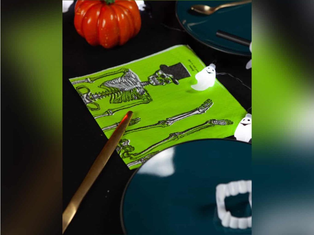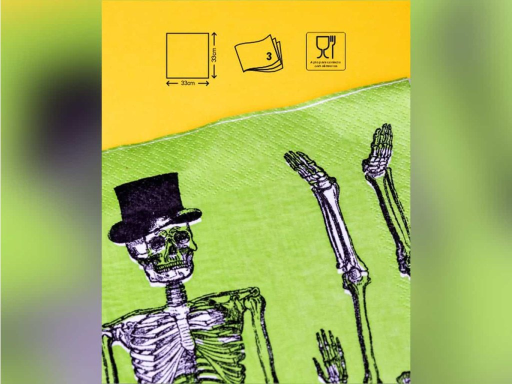 Připravte se na Halloween s těmito tematickými papírovými ubrousky s motivem kostlivce. Rozměr 33 × 33 cm zajišťuje dostatečnou velikost pro pohodlné použití. Netoxické inkousty na vodní bázi jsou šetrné k životnímu prostředí a nezávadné pro kontakt s potravinami.