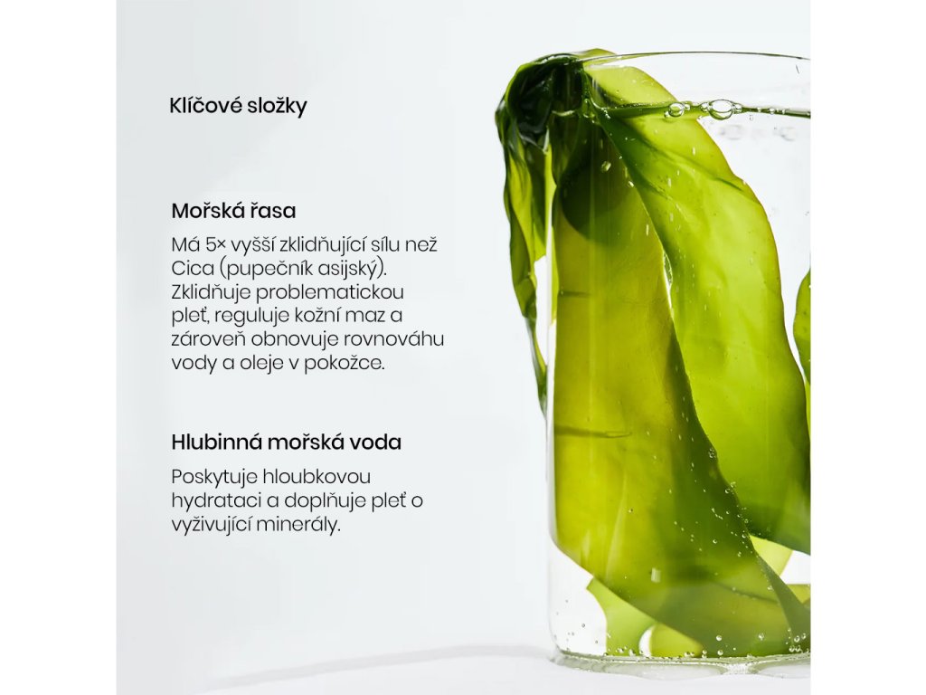 Klíčové složky: Extrakt z mořských řas (Sea Kelp), mořské minerály, nízkomolekulární kyselina hyaluronová.