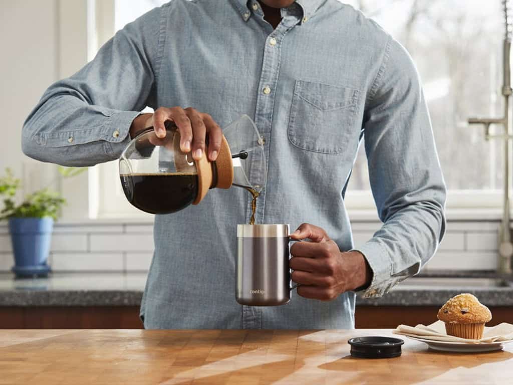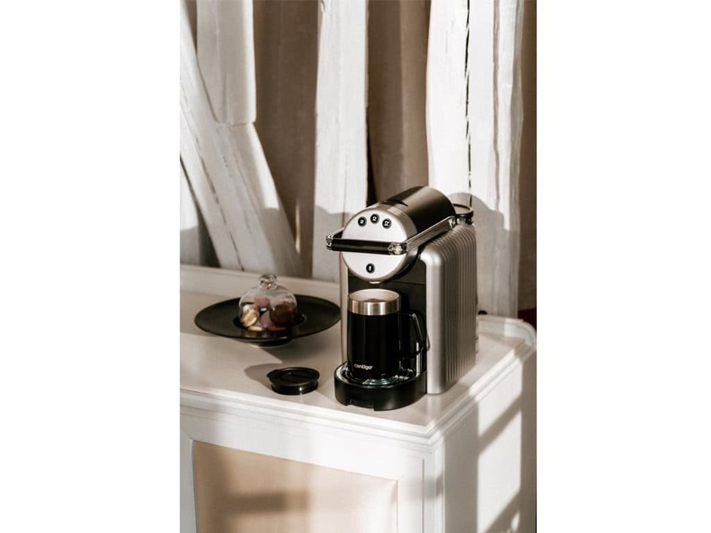 Silikónové dno zabezpečuje stabilitu a chráni povrchy pred poškriabaním. Kompaktný tvar umožňuje, aby sa hrnček zmestil pod väčšinu domácich kávovarov.