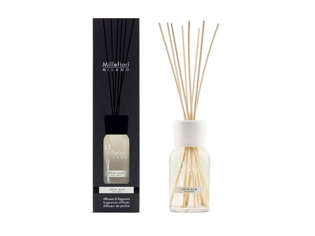 Millefiori Milano White Musk aroma difuzér 250 ml prináša delikátnu kompozíciu, kde sa biely pižmo a kvetinové tóny spájajú s jemnými vanilkovými akcentmi a základními drevitými tónmi cédru. Výsledná vôňa evokuje čistotu, sviežosť a jemné tajomstvo.