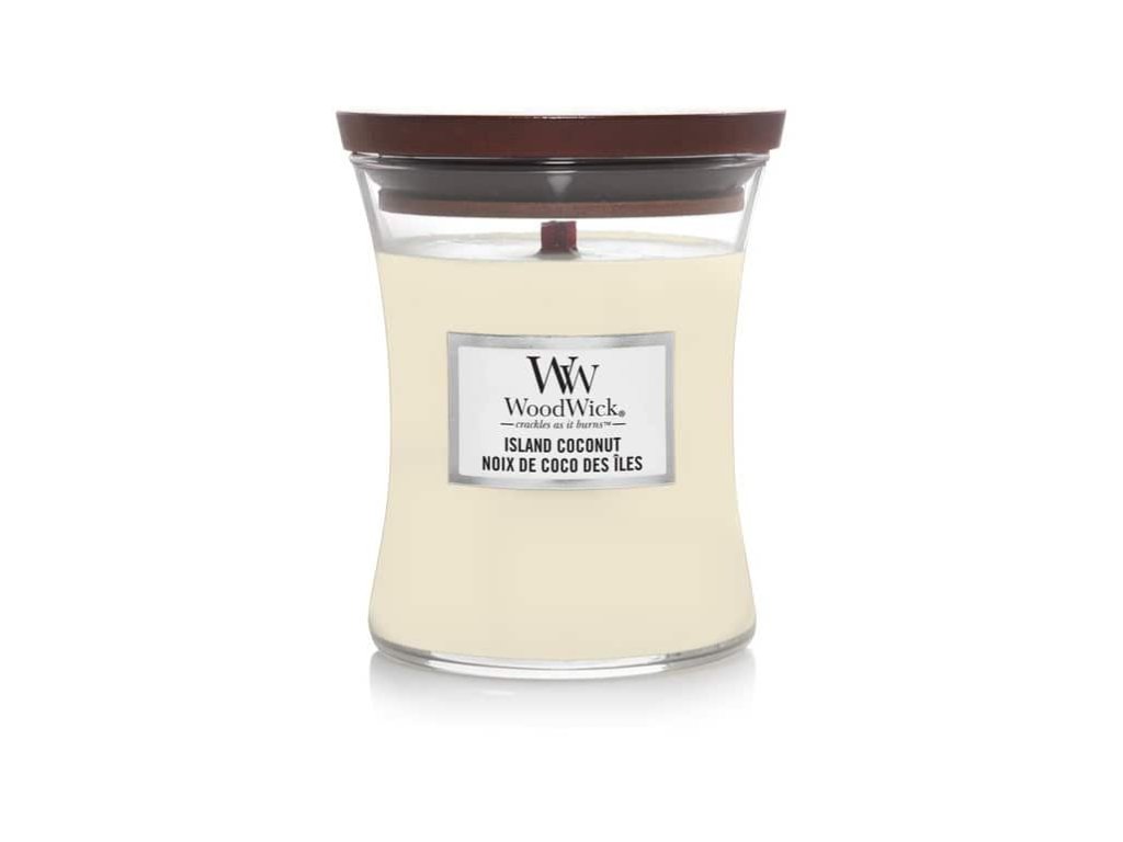 Užijte si relaxační chvíle s vůní tropického ráje. WoodWick Island Coconut v elegantní střední váze vás okouzlí sladkými tóny ananasu, krémového kokosu a banánu, které se postupně rozvíjejí do jemné vanilky, pižma a svěžího ovoce.