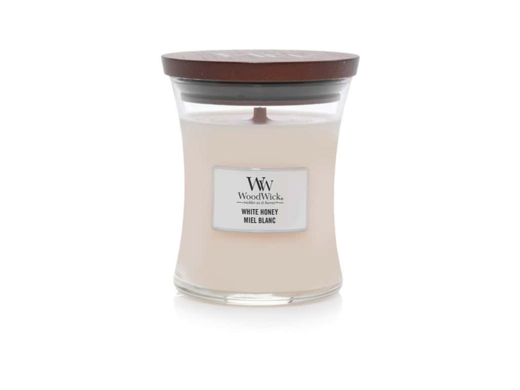 WoodWick White Honey přináší jemný, hřejivý zážitek jako z cukrárny. Sladká kombinace kandovaného pomerančového květu, pistácií a bergamotu přechází do hlubších tónů vanilkové orchideje, kakaa a kávových zrn, zakončená medovým sirupem a karamelovou tyčinkou.